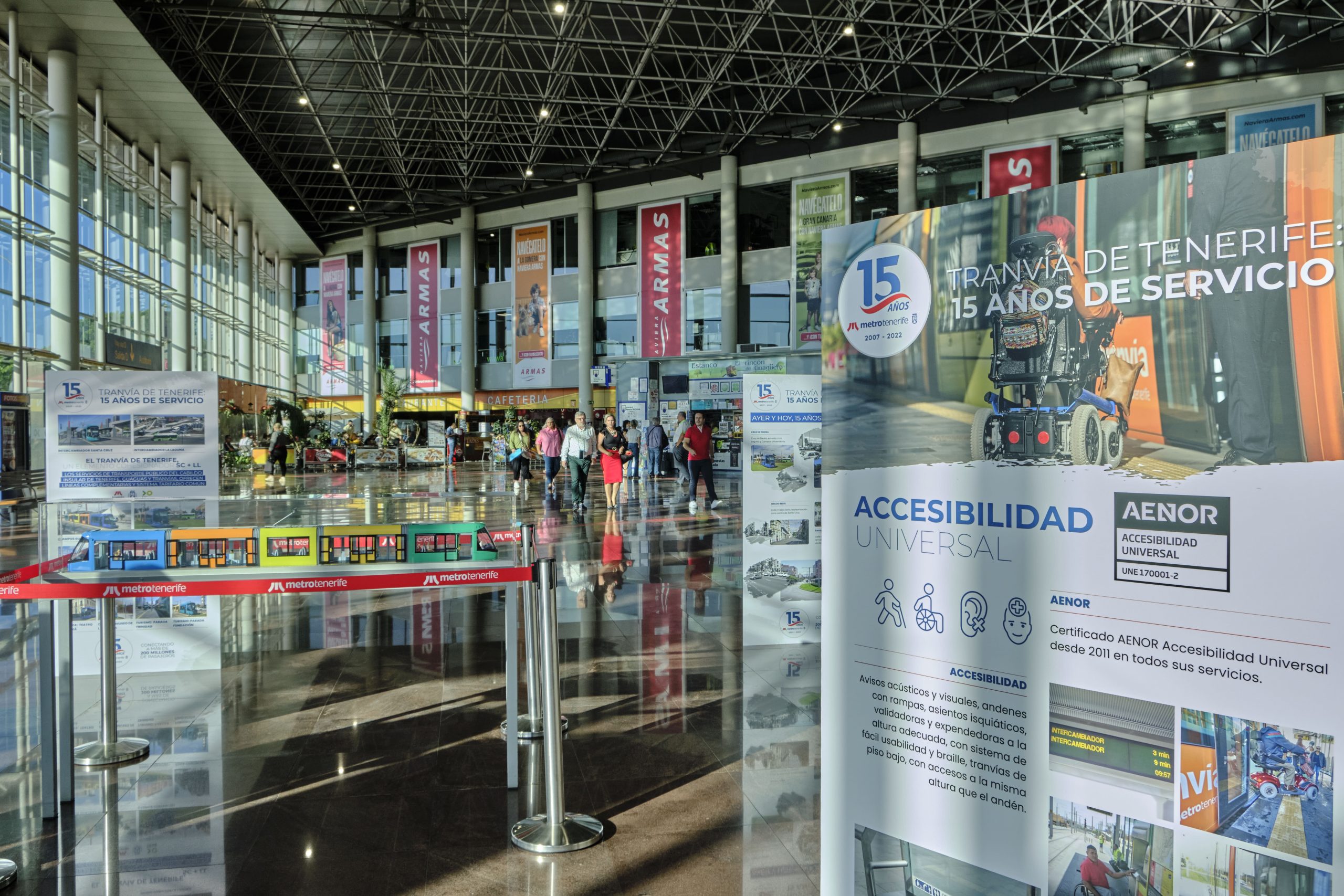 Metrotenerife, empresa de transporte del Cabildo de Tenerife, inaugura la exposición ‘Ayer y hoy, 15 años conectando’ que se podrá ver en el hall del Intercambiador de Santa Cruz de Tenerife hasta finales de este mes. La muestra forma parte del programa de actos conmemorativos por el 15º aniversario de la puesta en servicio del tranvía.