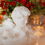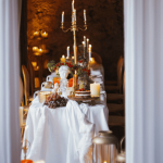 Una mesa que parece salida de un sueño barroco, velas infinitas, esculturas clásicas y ese punto teatral que tanto nos gusta.