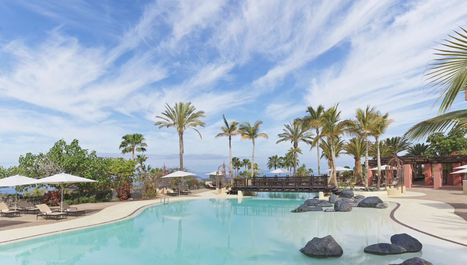 Situado frente al Atlántico y rodeado de exuberantes jardines, The Ritz-Carlton Tenerife, Abama destaca por su arquitectura inspirada en una ciudadela árabe y su apuesta por el bienestar y la desconexión en un entorno de primavera eterna.