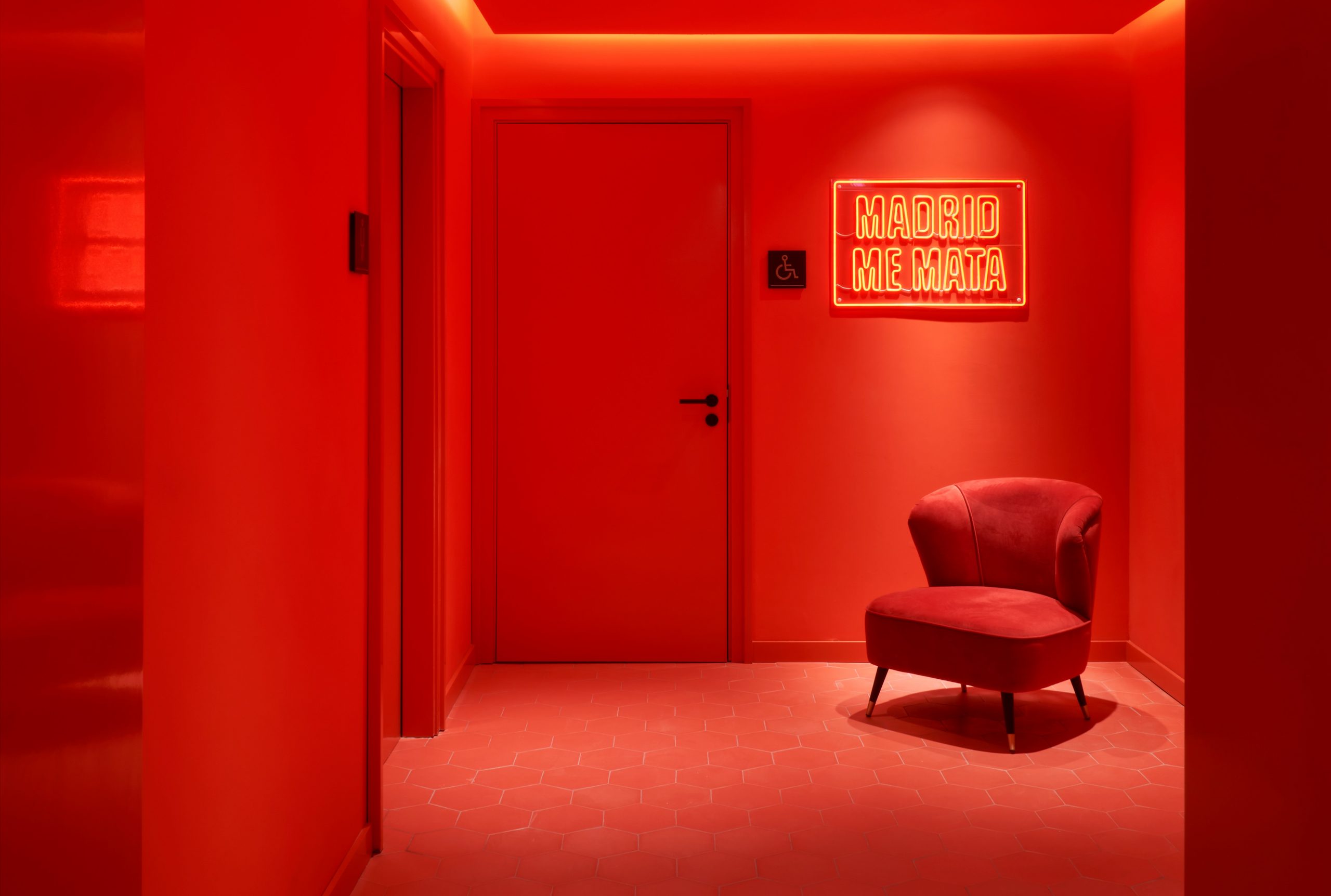 Del rojo Madrid y filosofía cañí nace el fondo madrileño más ‘instagrameable’. Su diseño único y llamativo —obra del reconocido interiorista Jaime Beriestain— se fundamenta en la asociación del rojo carmín con la ciudad del corazón de España mediante la calidez de sus acentos rojizos y una frase convertida en himno: ‘Madrid me mata’.