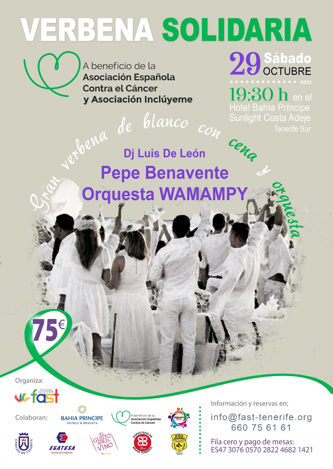 El foro ha anunciado que el sábado, 29 de octubre, organizará una Verbena Solidaria en el Hotel Bahía Príncipe Sunlight Costa Adeje. Su finalidad es recaudar fondos para comprar material ortoprotésico para pacientes oncológicos y, así, ayudar a la Asociación Española Contra el Cáncer. Además, el segundo objetivo será colaborar con la Asociación Inclúyeme para conseguir un vehículo que posibilite el transporte de alimentos a familias necesitadas.