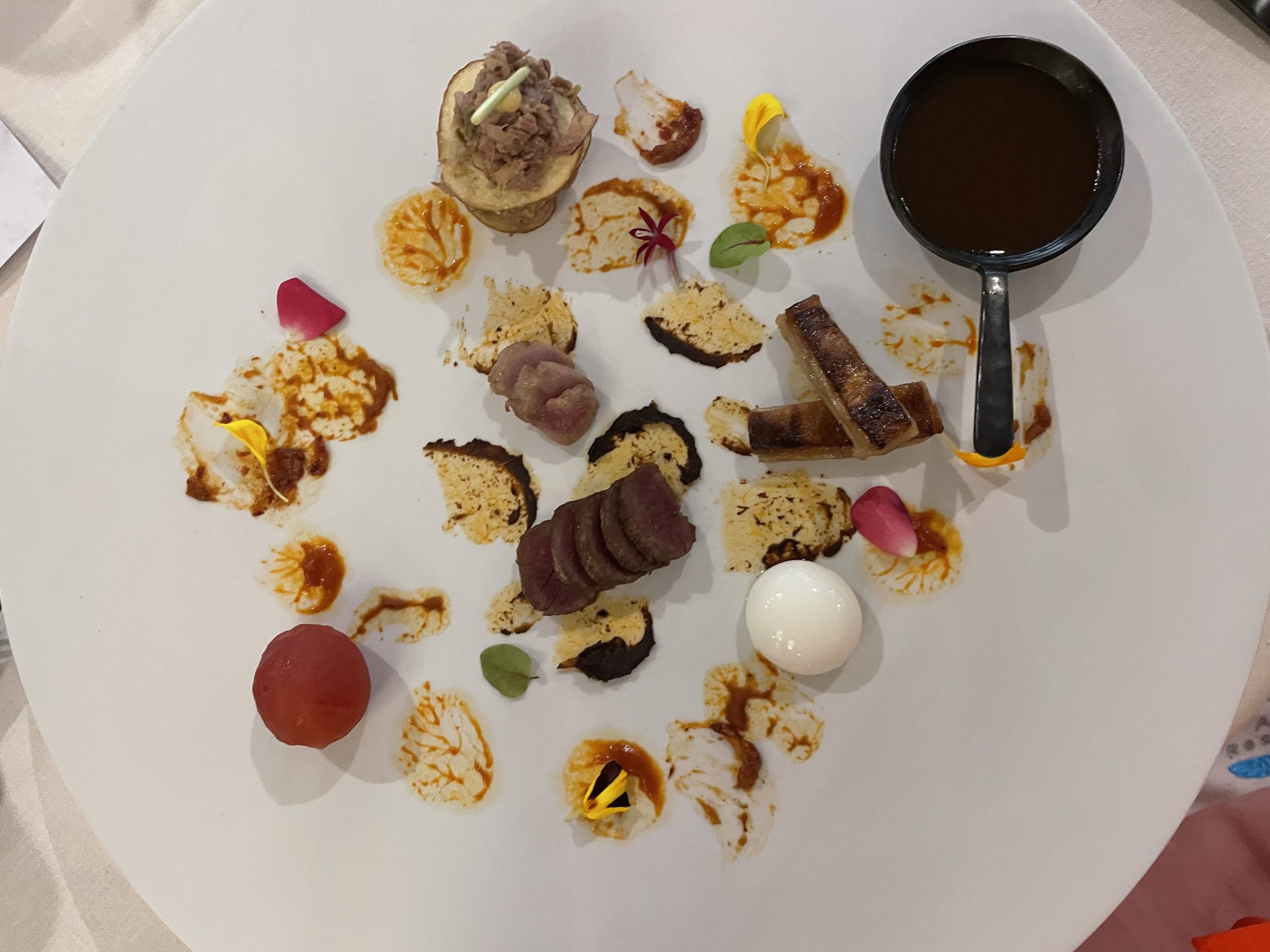 Nos cuentan que en 1981 solo se contabilizaban en Tenerife 20 cochinas negras y 3 cochinos negros y se pone en valor el gran trabajo de Juan Capote, que comenzó su tesis doctoral en la que destacaba el mantenimiento de esta raza tan importante para Canarias. Otro bocado de los que se quedan en el recuerdo es este Royal de cochino negro con salsa de beterrada y coronada con trufa negra.