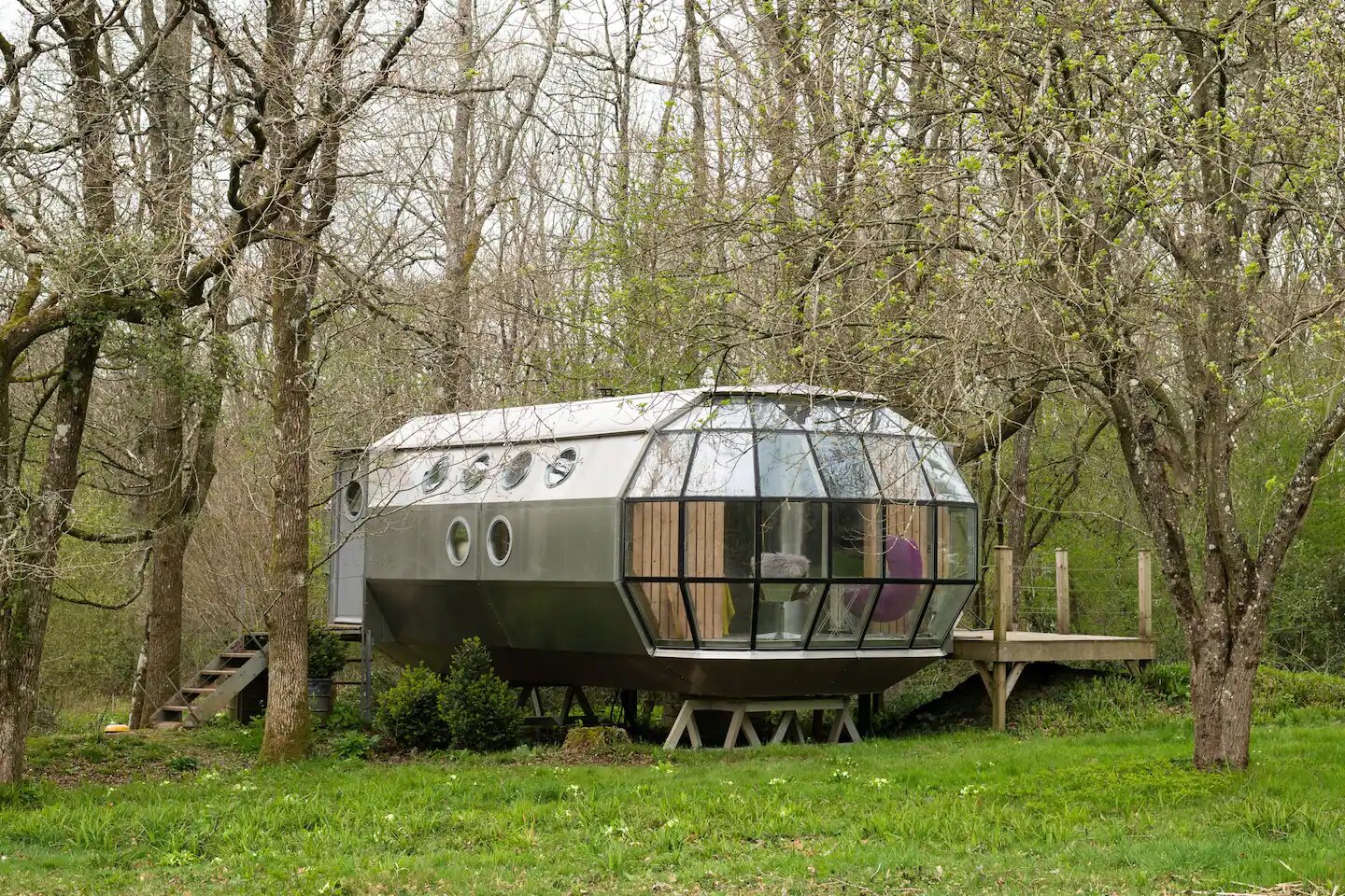 Los OVNI ya no abducen humanos. Ahora se prestan a que durmamos plácidamente en ellos. O eso parece con The UFO, un alojamiento en el sur de Pembrokeshire (Reino Unido) que no deja indiferente a nadie. Hasta contiene un monitor para juegos clásicos de temática espacial de los 80 como Space Invaders o Defender. Desde 204 euros la noche.