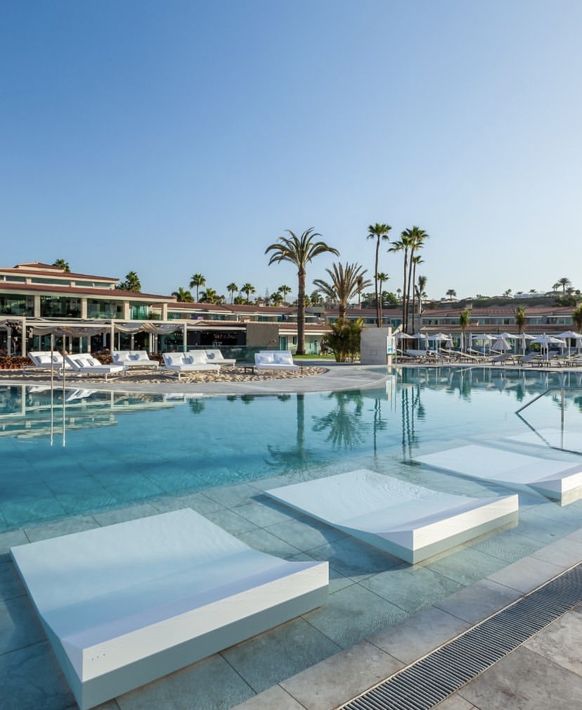 Situado a pocos minutos de la Reserva Natural de las Dunas de Maspalomas se encuentra este hotel donde poder disfrutar en familia, o en pareja y amigos en la zona de Only Adults. Esta zona está equipada con piscina y camas balinesas, y están disponible reservando las habitaciones Adults Only Junior Suite o Adults Only Suite.