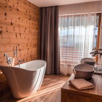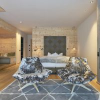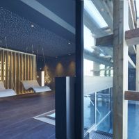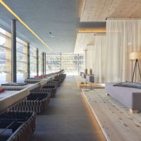 Además, para descansar de tanta adrenalina este hotel de cuatro estrellas cuenta con un centro de bienestar. Aquí los huéspedes tienen la ocasión de disfrutar de varias saunas, destacando la panorámica finlandesa, que ofrece unas vistas de excepción. También pueden relajarse con un baño turco, nadar en la piscina cubierta o en la exterior, de 25 m de largo. Son experiencias que, también, juegan con los sentidos, pues el centro está impregnado de agradables olores a heno de montaña y otras fragancias de la naturaleza.