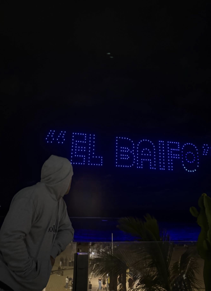 El anuncio se produjo mediante un espectáculo de drones sobre el mar. Las luces comenzaron a dibujar distintas figuras en el cielo, muchas de ellas vinculadas a la identidad canaria, antes de formar finalmente el nombre del álbum: El Baifo. Ese fue el momento clave, cuando los asistentes entendieron que se trataba de la presentación oficial del nuevo proyecto.