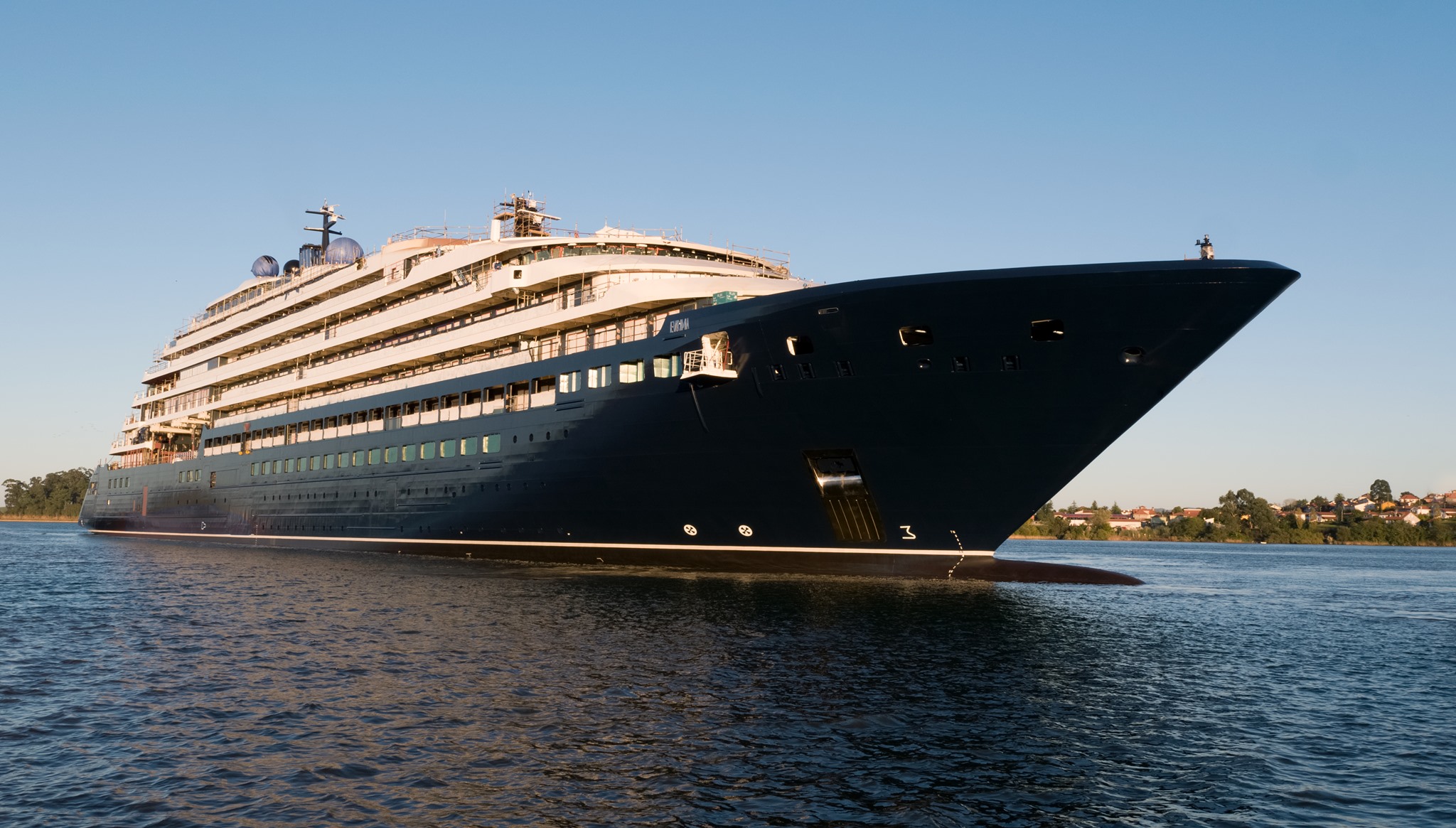 Además, todas las suites a bordo del Evrima están elegantemente decoradas con todas las comodidades y cuentan con ventanales y una terraza privada con vista infinita.