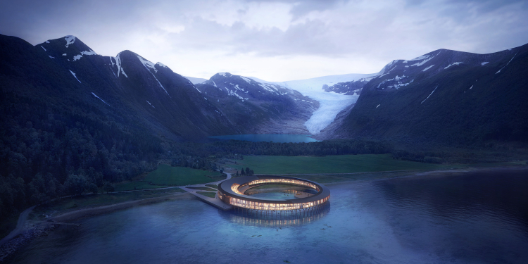 “Para nosotros era importante diseñar un edificio sostenible que dejara una huella ambiental mínima en esta hermosa naturaleza del norte”, explica el fundador de Snøhetta. Además, añade que “la construcción de un hotel energético positivo y de bajo impacto es un factor fundamental para crear un destino turístico sostenible respetando las peculiaridades de la parcela; las especies de plantas raras, las aguas limpias y el hielo azul del glaciar Svartisen”.