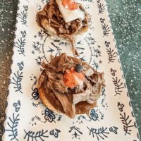 Nosotros queríamos probar un poco de todo, pero no podían faltar las croquetas, en esta ocasión, de carrillera de ternera y de bacalao con langostino; también disfrutamos, de lo lindo, de la tosta gratinada de brioche artesano de cochinillo con manzana y queso de cabra; de la ensalada (fuera de carta) de tomate Raf Marmande con caballa en escabeche casero, kalamata y aguacate; de las alcachofas fritas con aliño de lima y daditos de almendra; de la tabla de quesos locales e internacionales; de la tabla de embutido recién cortado y del solomillo de ternera a la plancha con plátano y cebolla confitada a la malvasía volcánica.